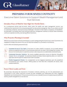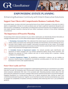 At GlassRatner, we specialize in providing access to a network of experienced interim executives who can step in during critical moments. Our experience with family enterprises enables us to deliver tailored support, ensuring families are prepared to face challenges effectively. Together, we can enhance business continuity strategies, ensuring swift reactions and smoother transitions for families during challenging times.